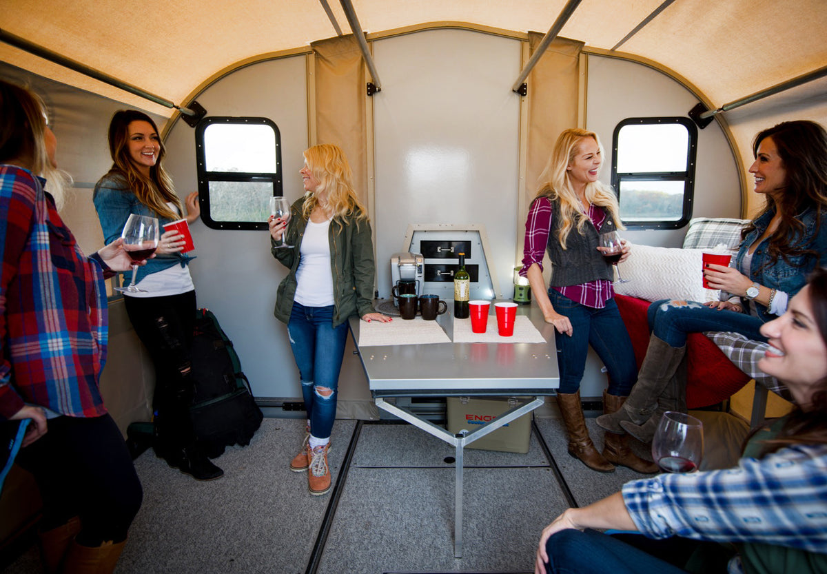 Durable, marine grade fabric insulates the indoor cabin from chilly temperatures or blistering heat. Terrain leveling system allows the GoSun Camp365 to be deployed in sand, dirt, mud and snow. At a max height of 7' 6" with close to 700 cubic feet, the space is entirely customizable to fit any adventure.