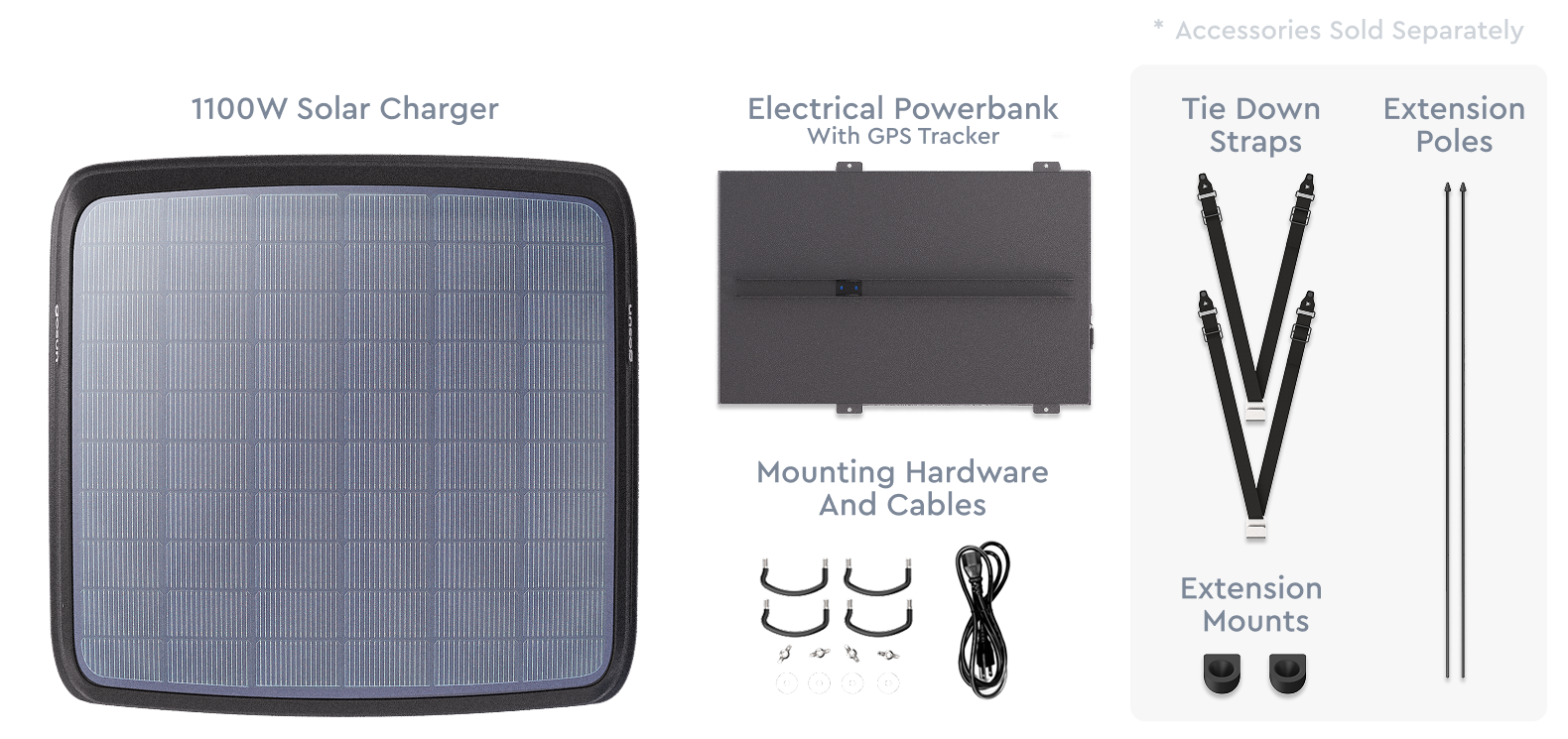 Enhance your experience with optional upgrades like an extender to boost your solar array’s output and a high-wind strap to secure your system.