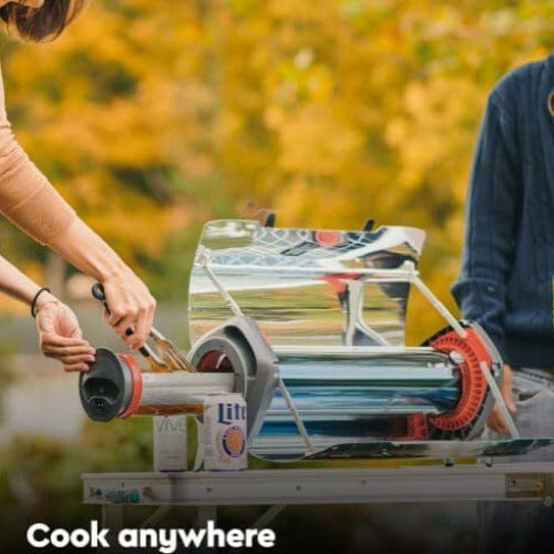 Traditional grills can't compete - once the charcoal or propane runs out. Meals in minutes with only sunlight, this hybrid solar oven provides solar cooking any time, any place.