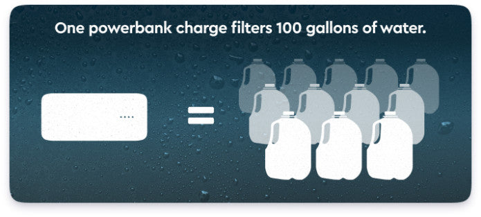 The GoSun Flow can filter 100 Gallons of water with a fully charged Power 18, which is included with the Flow.