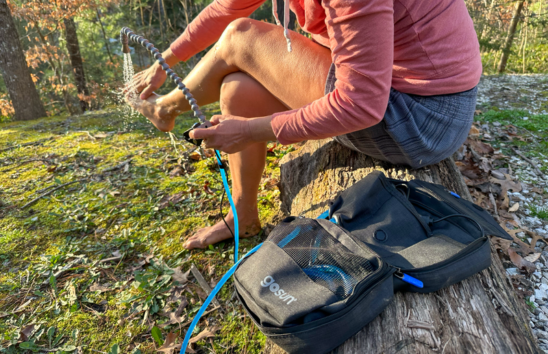 The Spray pumps water from any water source and is a great way to take quick showers, or for use as a hand cleaning station.