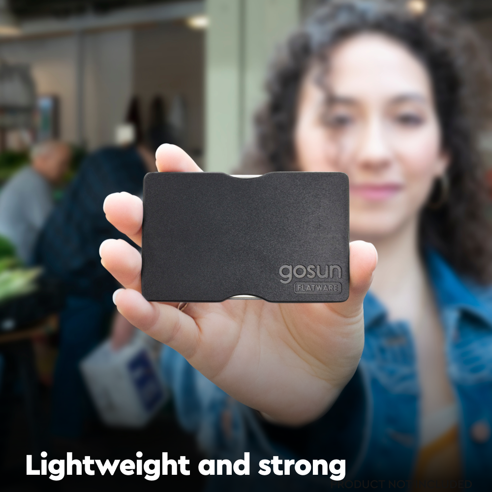 GoSun Flatware™ is a portable utensil set designed to combat single-use plastic. Made of stainless steel, they conveniently fit in your wallet, purse, or pocket, ensuring they are always within reach. Perfect for camping, travel, and take-out, this compact cutlery set promotes clean living on the go.