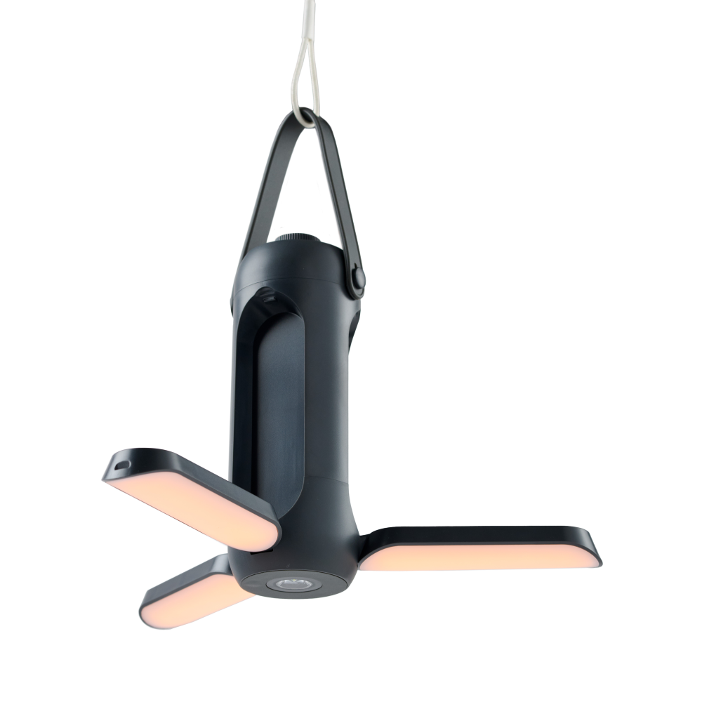Flip the light panels out to change the direction of illumination. Run flashlight beam and lantern at the same time. Find your way through the darkness.