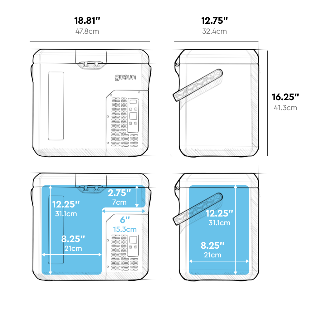 The Chillito solar cooler can be powered by the included Power 144, DC car outlet, or AC adapter.