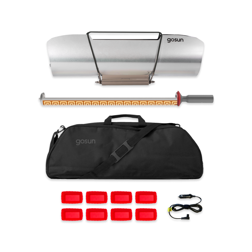 The Sport-E can either use direct sunlight to cook food, or it can be plugged in to any 12V source for cooking at night or when sunlight is limited.