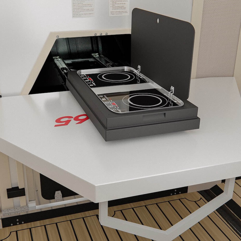 - 21QT fridge freezer (2) fits in the rear sliding drawer or 35 QT Fridge Freezer